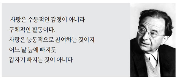 프롬은 “사랑은 타인의 삶과 성장을 위한 적극적인 관심과 배려”라고 정의한다.